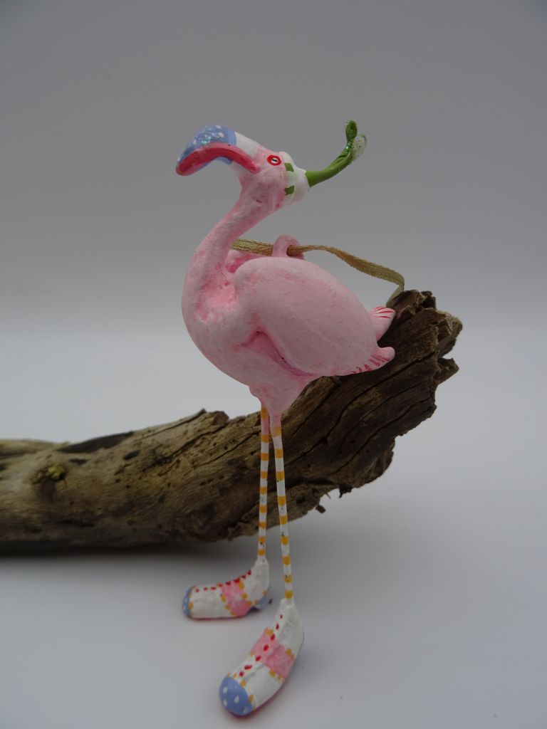 Lustige Flamingo Dame zum aufhängen. Höhe 10 cm.