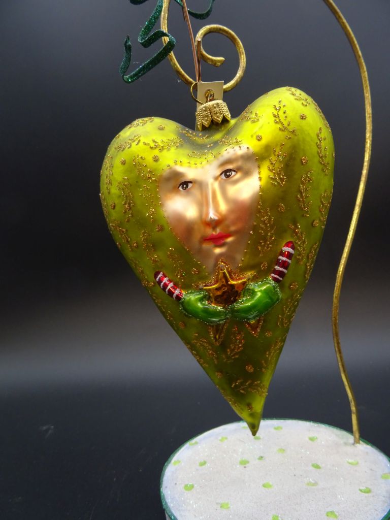 Wunderschönes Glass Ornament Heart with Star, Höhe 13 cm.